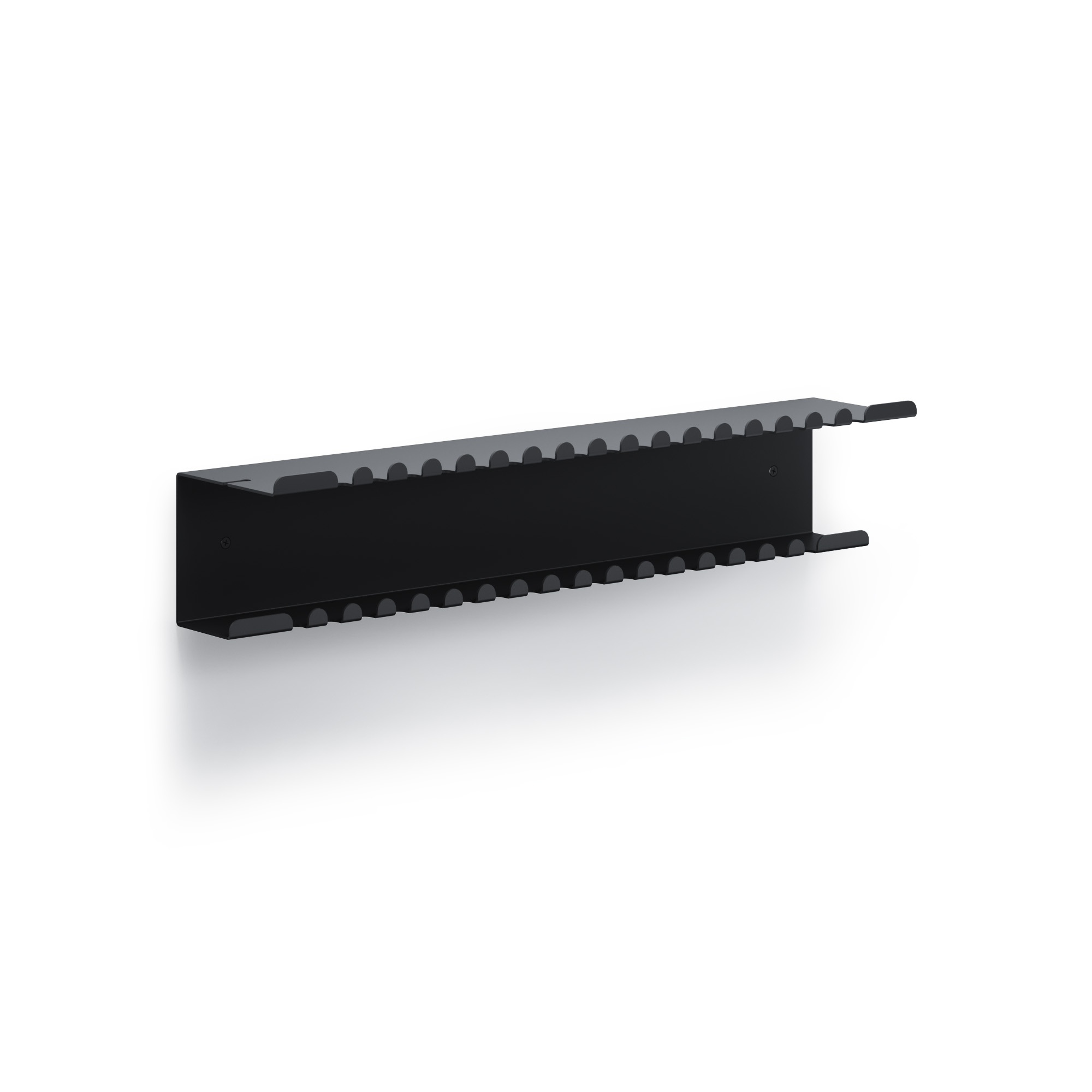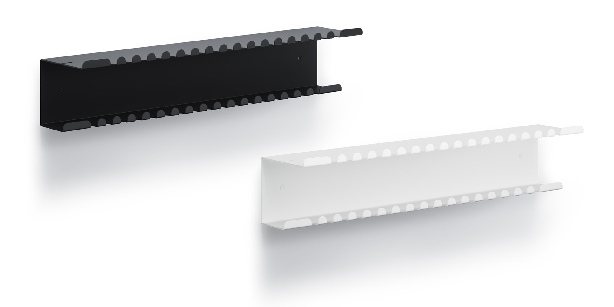 Półka Rummelr wykonana jest z blachy stalowej o grubości 1,5 mm malowanej proszkowo. Dzięki temu półka jest odporna na zarysowania i korozję. Dzięki zaokrąglonym narożnikom półka jest bezpieczna.